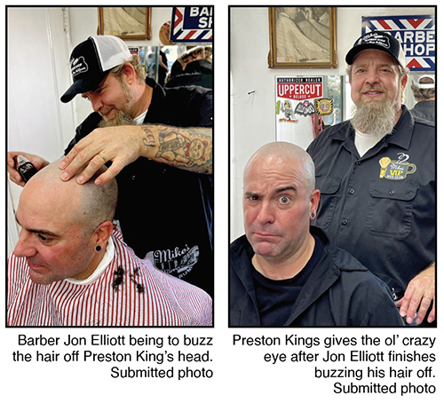 As Jon Elliott, owner of Mike’s Barbershop in Morro Bay, explains, one of the shop’s long-time regular customers, Preston Sky King, decided to give in to the inevitable and shave his hair off.