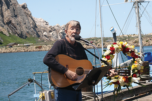 The late-Pastor Roger Evey sings a song at the Blessing of the Fleet from 2014. File photo by Neil Farrell