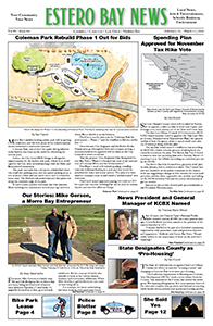 • Coleman Park Rebuild Phase 1 Out for Bid • Spending Plan Approved for November Tax Hike Vote • Our Stories: Mike Gerson, a Morro Bay Entrepreneur • News Predident and General Manager of KCBX Named • Police Blotter